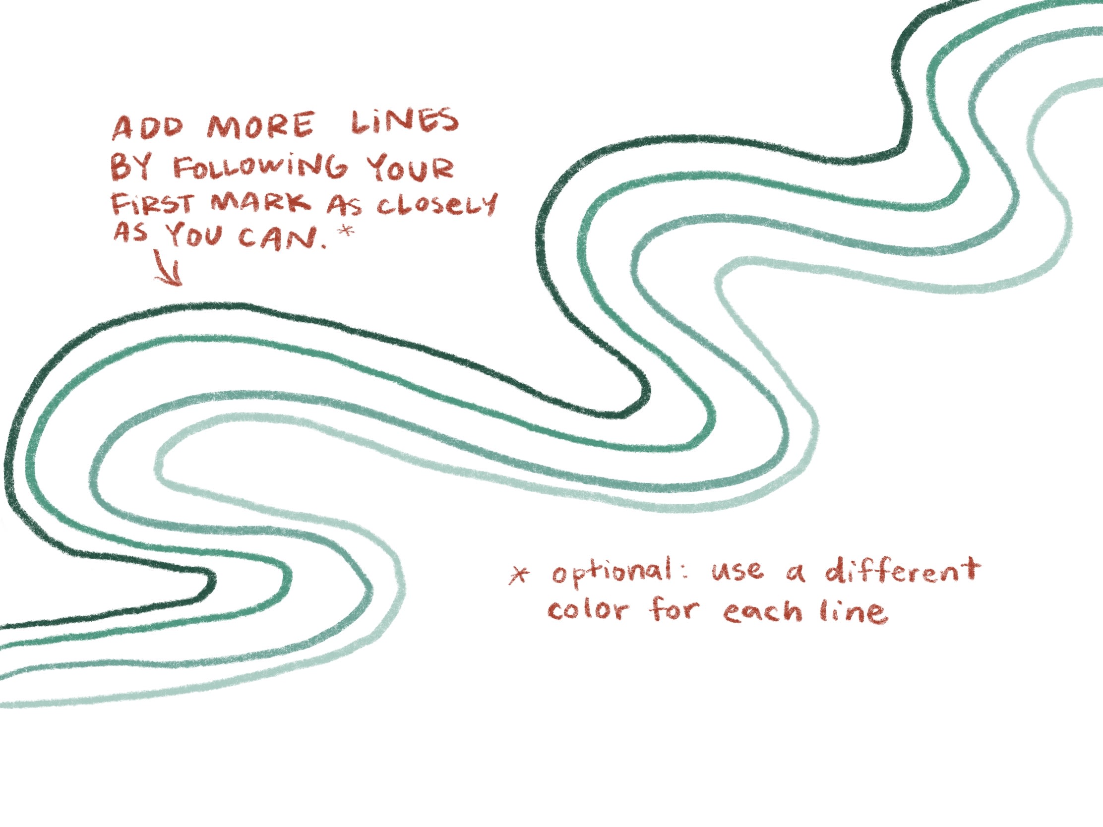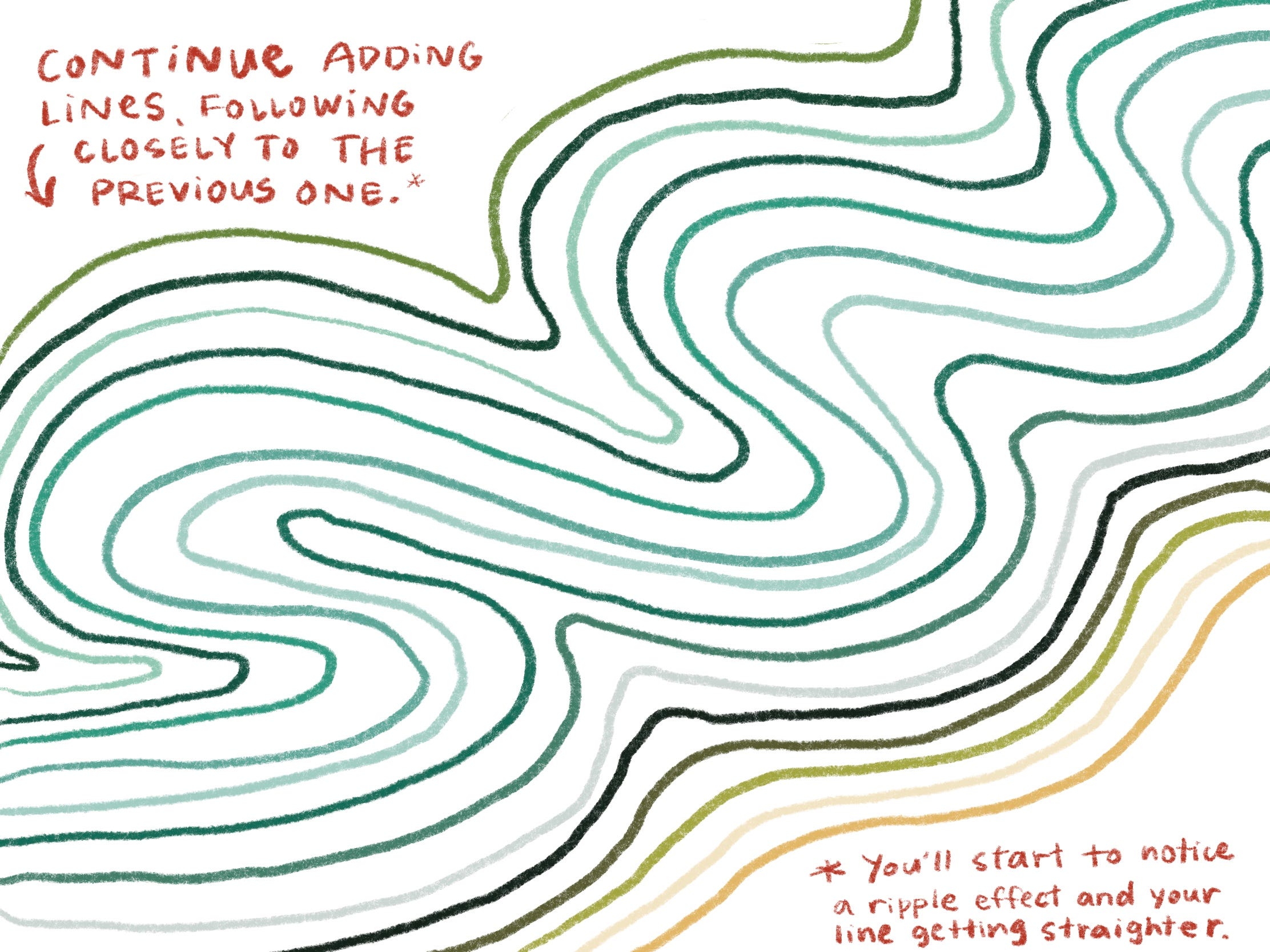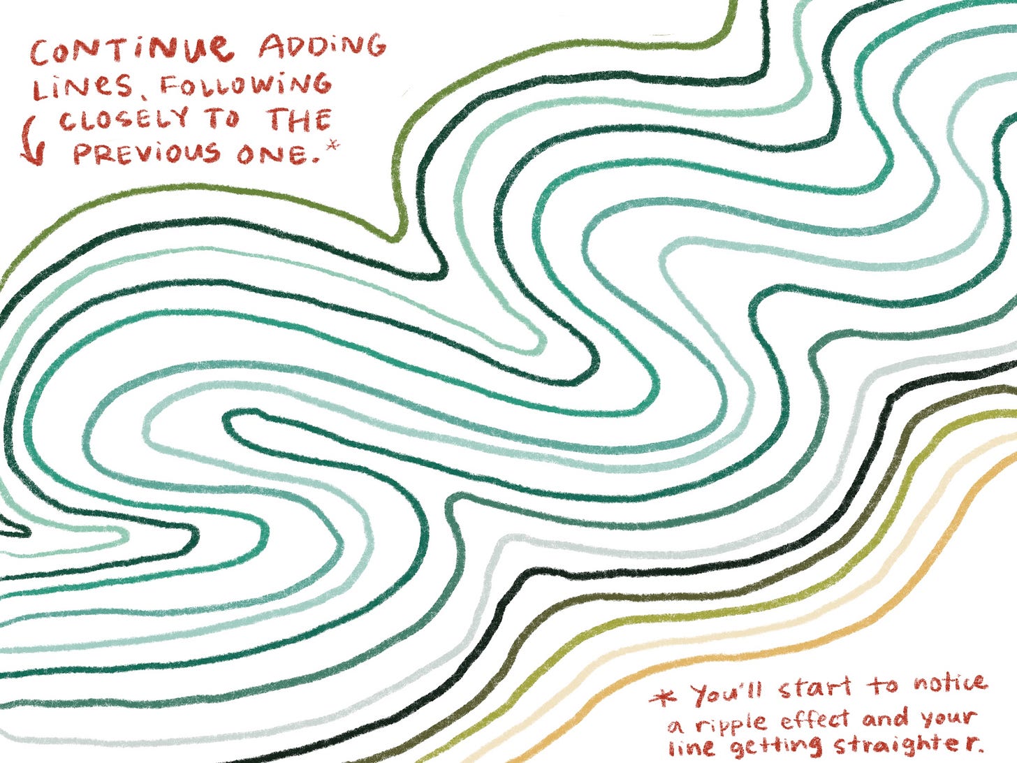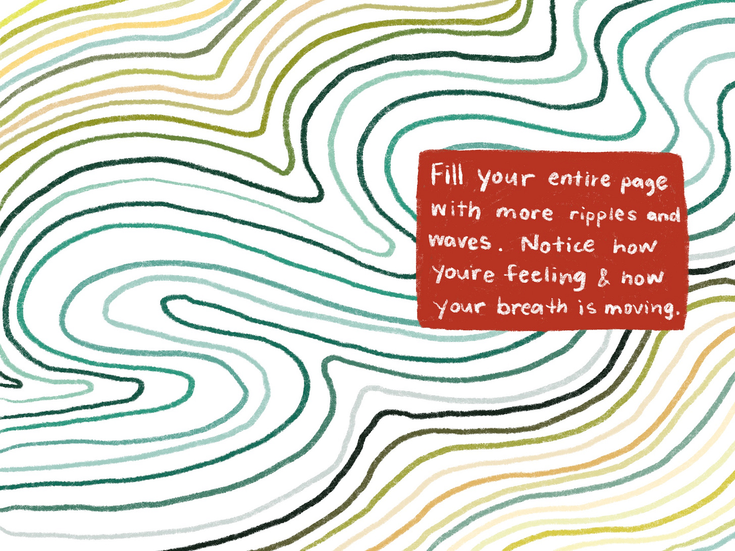 it’s called fingerprint waves because the final product ends up looking a lot like a fingerprint, and throughout the process, you’re making waves of the original squiggle that you make across the page. it’s also a reminder that any emotional experience, no matter how intense, can eventually calm and settle down. this practice certainly helped settle my nerves multiple times now. i believe it works because it acknowledges and validates your individual experience (like the uniqueness of your fingerprint) while also acknowledging that you’re not alone, that you’ve got a community of people ready to embrace and support you though it all, the same way the waves of the fingerprint you created hug together to make up the final image. take these reminders with you through today and any day you need it! here are the step by step instructions below: